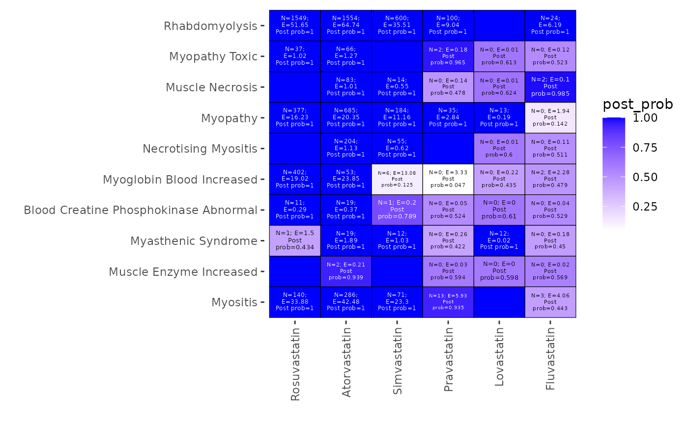 heatmap_pvEBayes.RdThis function generates a heatmap to visualize the posterior probabilities of being a signal for selected AEs and drugs.